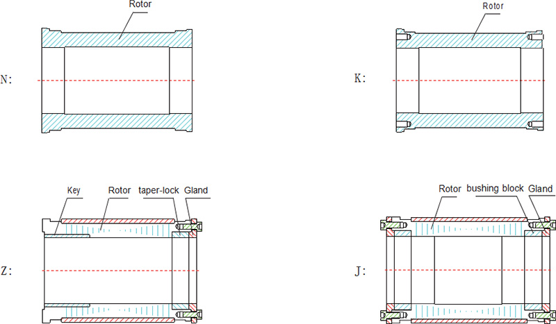 | 7 | Rotor installation method | Code Installation method Code Installation method N: direct thermal sleeve K: through-hole mounting Z: expanding-hub mounting J: Key mounting | Through-hole mounting |